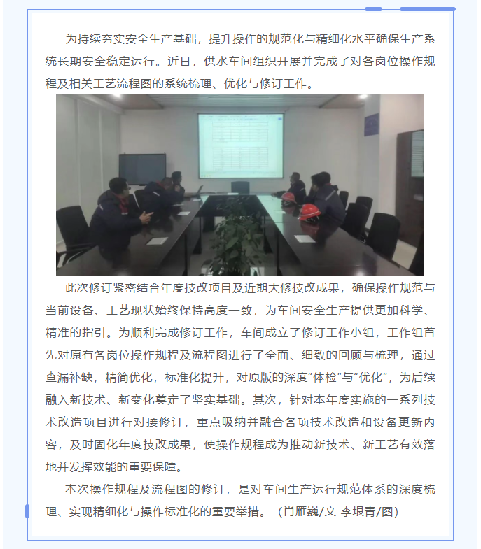供水車間扎實(shí)推進(jìn)操作規(guī)程及流程圖修訂工作