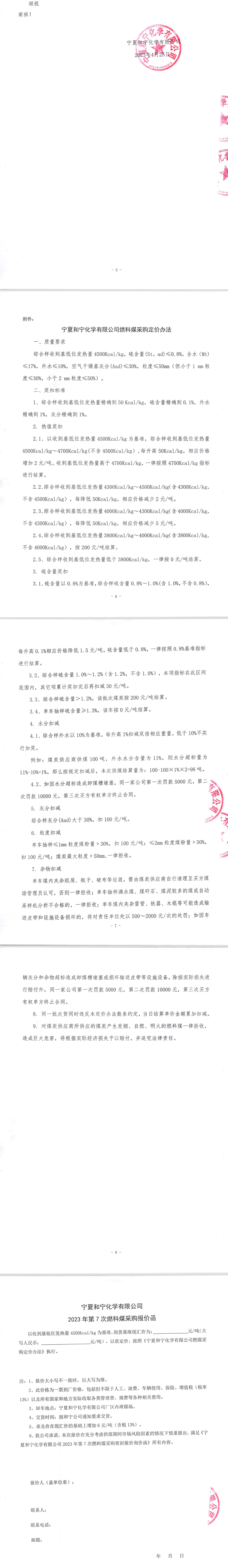 寧夏和寧化學有限公司2023年第7次燃料煤采購密封報價詢價函