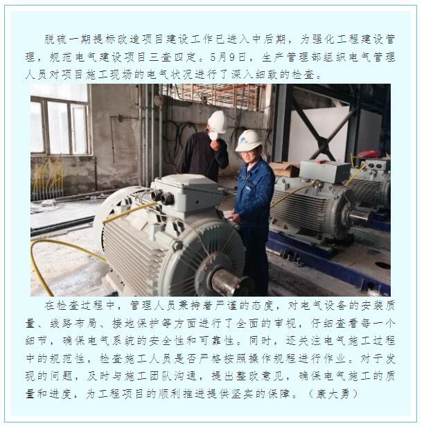 生產管理部組織開展脫硫一期提標改造項目電氣檢查