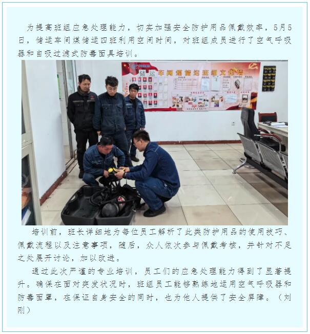 儲(chǔ)運(yùn)車(chē)間開(kāi)展空氣呼吸器和過(guò)濾式防毒面具培訓(xùn)