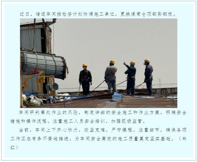 儲運車間煤筒倉頂部彩鋼板更新作業全面推進