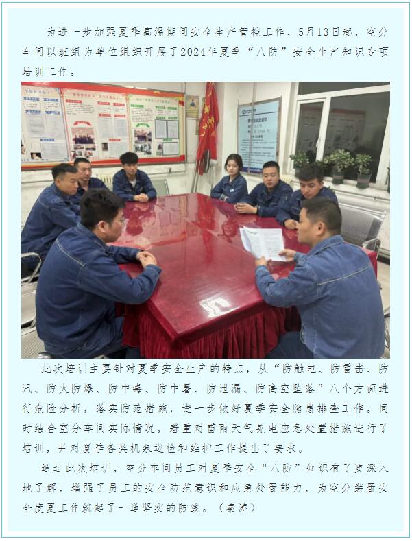 空分車間組織開展夏季“八防”培訓