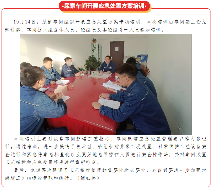 尿素車間開展應(yīng)急處置方案培訓(xùn)