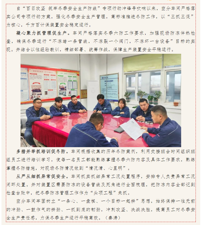 空分車間“三抓三促”引領筑牢冬季安全生產(chǎn)防線
