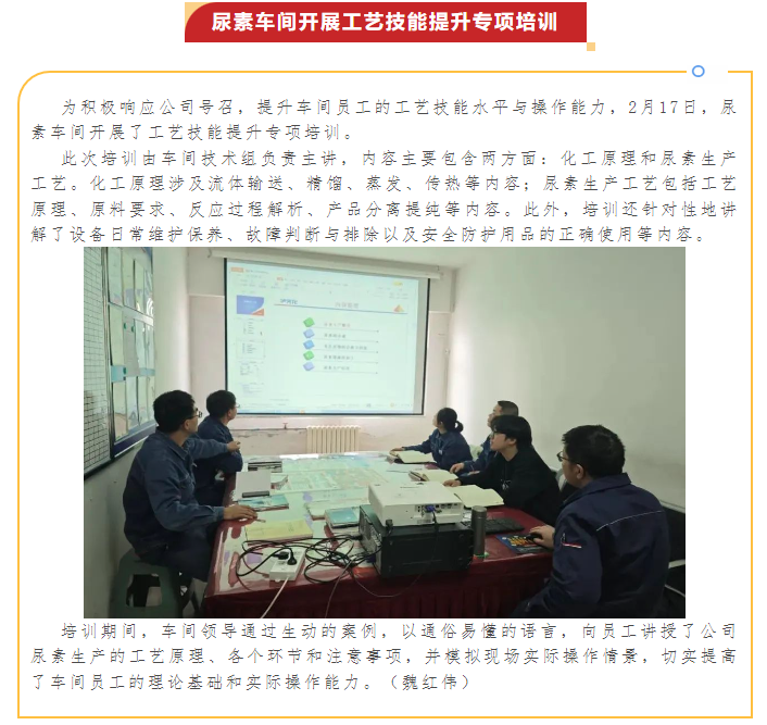 尿素車間開展工藝技能提升專項培訓
