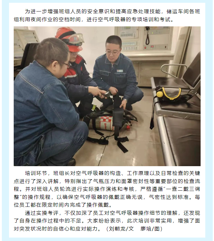 儲(chǔ)運(yùn)車間開(kāi)展空氣呼吸器專項(xiàng)培訓(xùn)