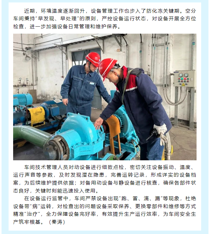 空分車間加強(qiáng)設(shè)備檢查,護(hù)航春季安全生產(chǎn)