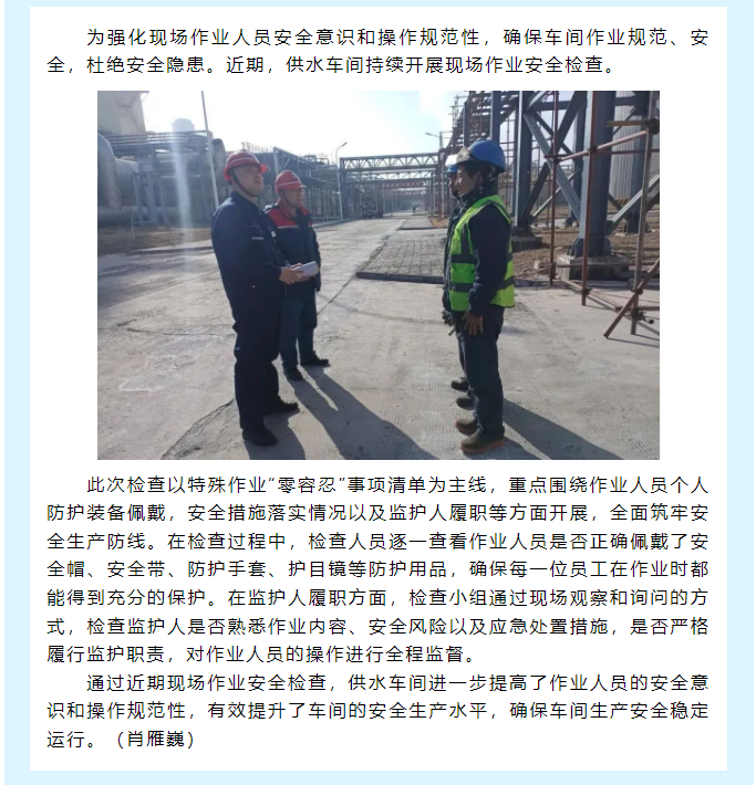 供水車間開展現場作業安全檢查