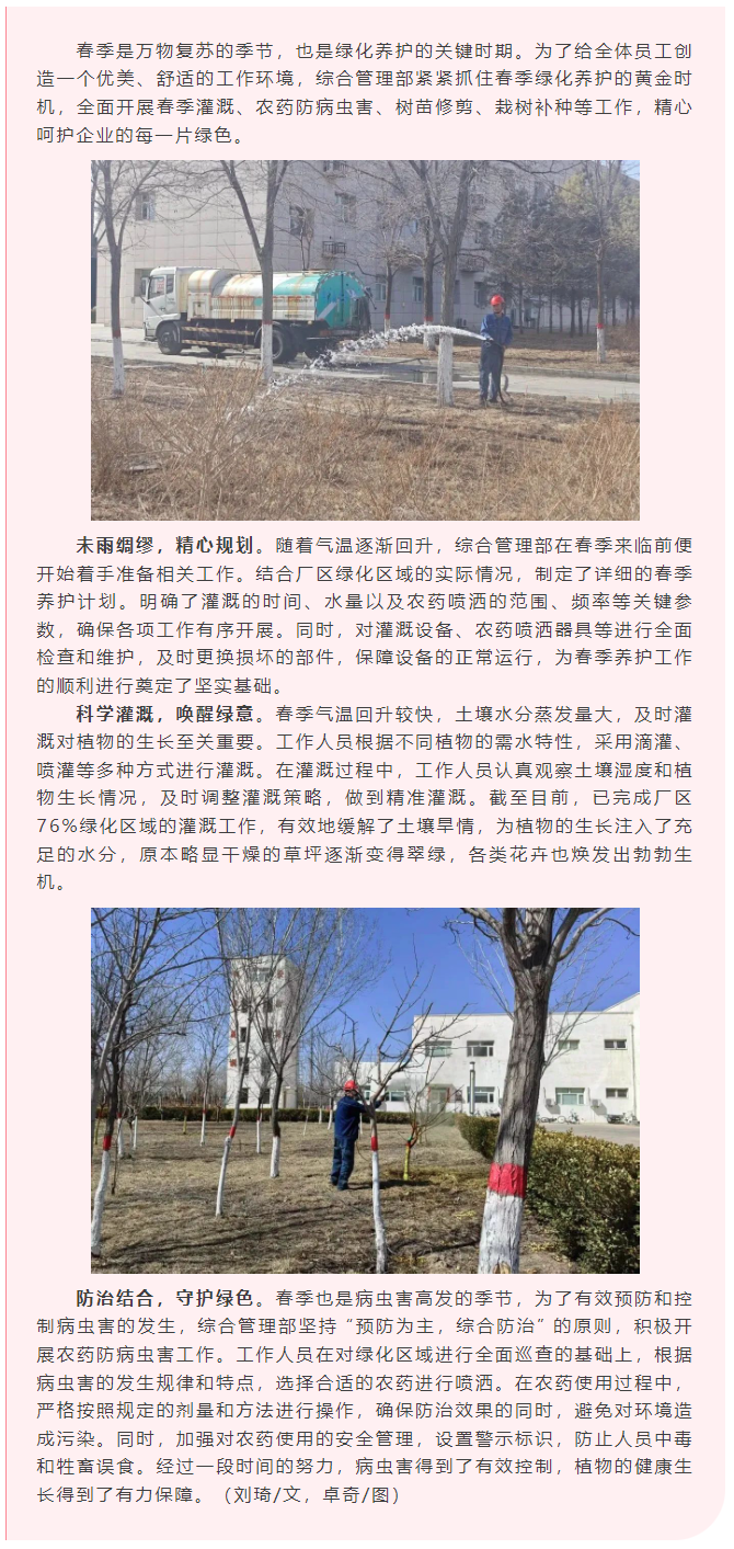 守護(hù)綠色生機(jī),助力企業(yè)綠色發(fā)展 ——綜合管理部春季養(yǎng)護(hù)工作進(jìn)行時(shí)