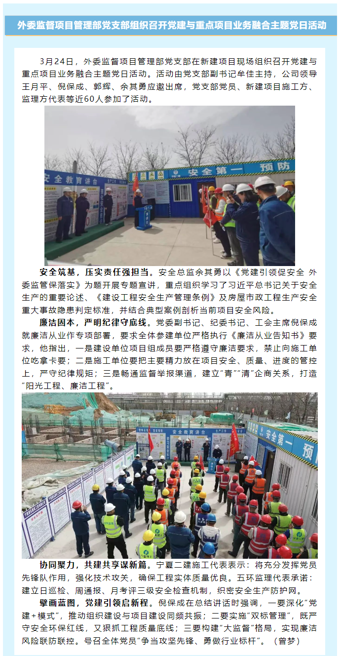外委監督項目管理部黨支部組織召開黨建與重點項目業務融合主題黨日活動