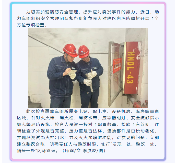 動(dòng)力車間開展消防設(shè)施專項(xiàng)檢查
