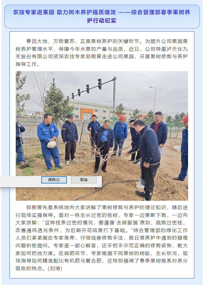 農(nóng)技專家進(jìn)果園 助力樹木養(yǎng)護(hù)提質(zhì)增效 ——綜合管理部春季果樹養(yǎng)護(hù)行動紀(jì)實