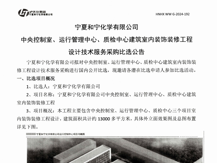 2024-12-23寧夏和寧化學有限公司中央控制室、運行管理中心、質檢中心建筑室內裝飾裝修工程設計技術服務采購比選公告.pdf [全文]