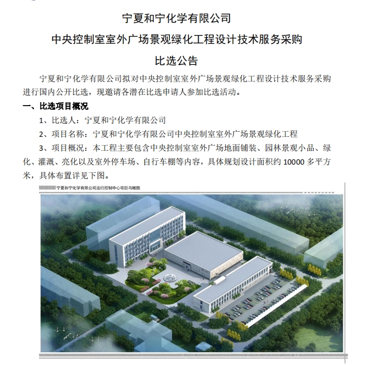 寧夏和寧化學有限公司中央控制室室外廣場景觀綠化工程設計技術服務采購比選公告.pdf [全文]