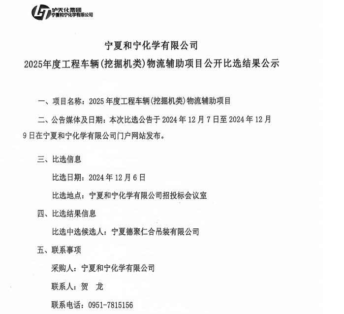 2024-12-08寧夏和寧化學有限公司2025年度工程車輛(挖掘機類)物流輔助項目公開比選結果公示.pdf [全文]