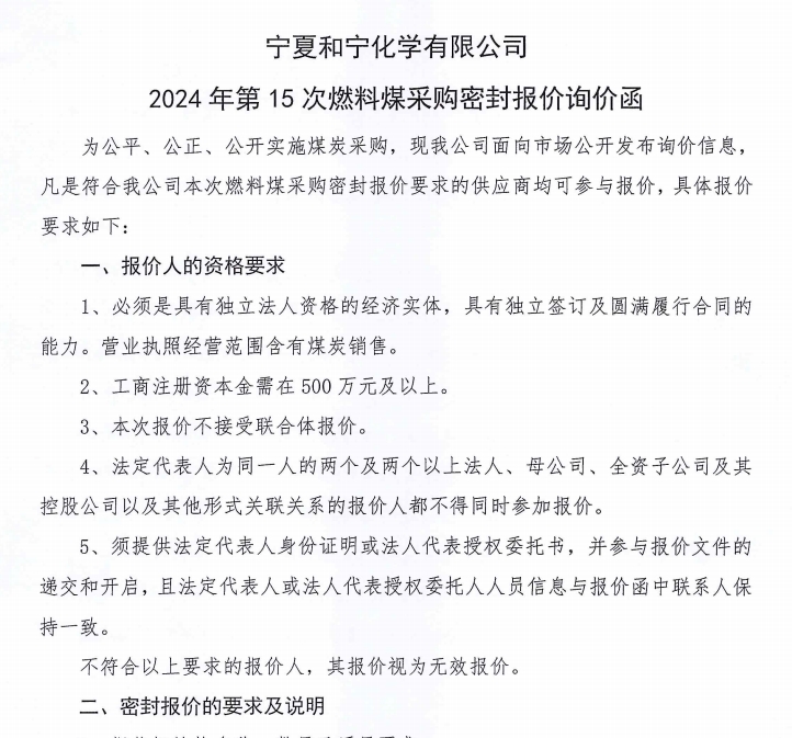 2024-09-05寧夏和寧化學有限公司2024 年第 15 次燃料煤采購密封報價詢價函.pdf [全文]
