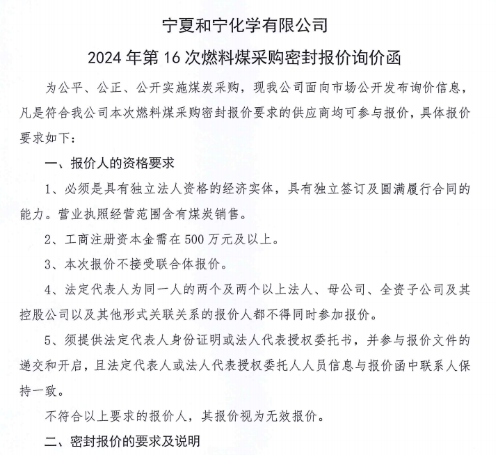 2024-10-10寧夏和寧化學有限公司2024年第16次燃料煤采購密封報價詢價函.pdf [全文]