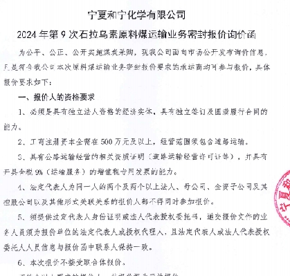 2024-10-10寧夏和寧化學有限公司2024年第9次石拉烏素原料煤運輸業務密封報價詢價函.pdf [全文]
