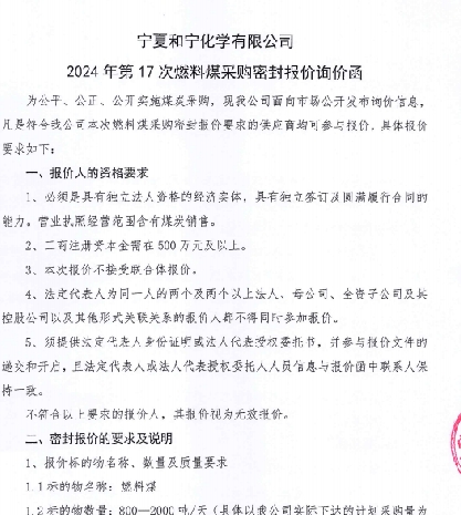 2024-10-10寧夏和寧化學有限公司2024年第17次燃料煤采購密封報價詢價函.pdf [全文]