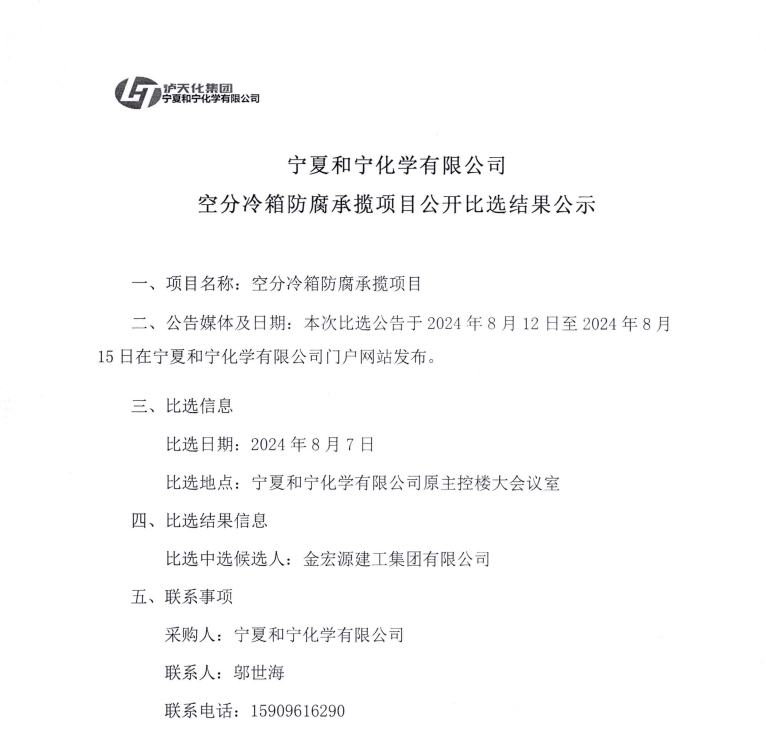 2024-08-14寧夏和寧化學有限公司空分冷箱防腐承攬項目公開比選結果公示.pdf [全文]