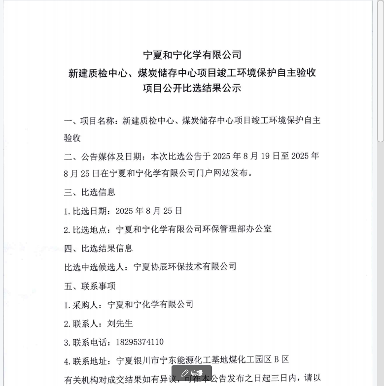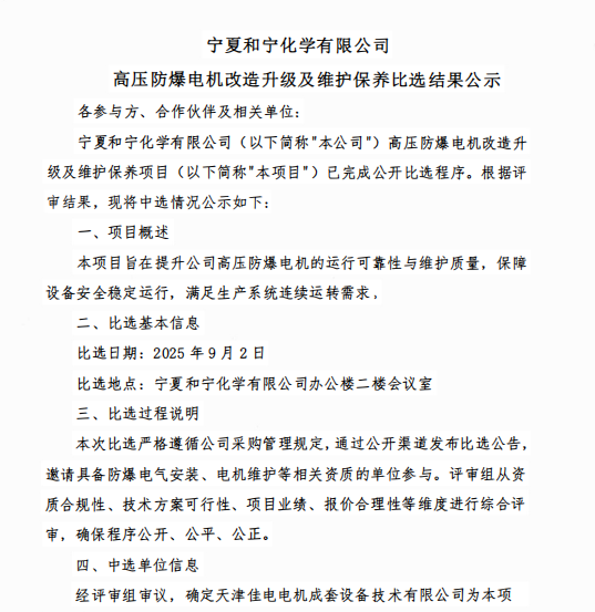 2025-09-08寧夏和寧化學有限公司高壓防爆電機改造升級及維護保養(yǎng)比選結果公示.pdf [全文]