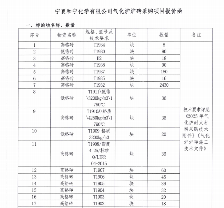 2025-09-05寧夏和寧化學有限公司氣化爐爐磚采購項目報價函.pdf [全文]