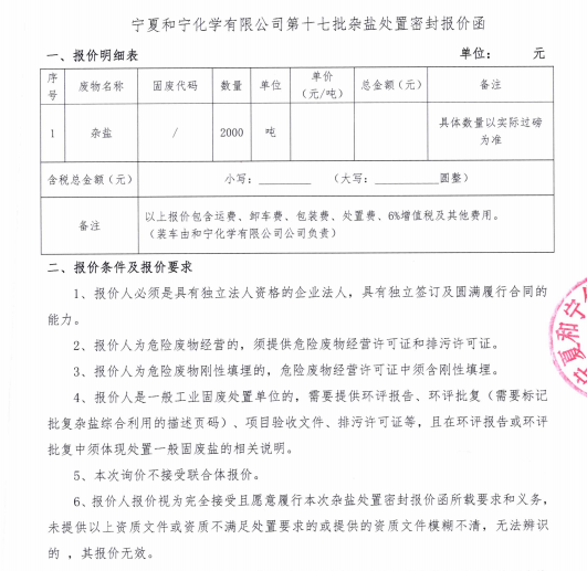 2025-09-08寧夏和寧化學有限公司第十七批雜鹽處置密封報價函.pdf [全文]