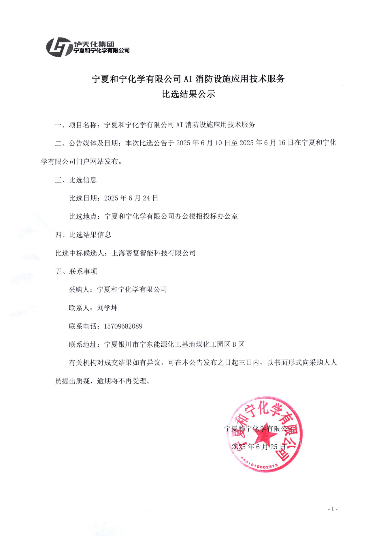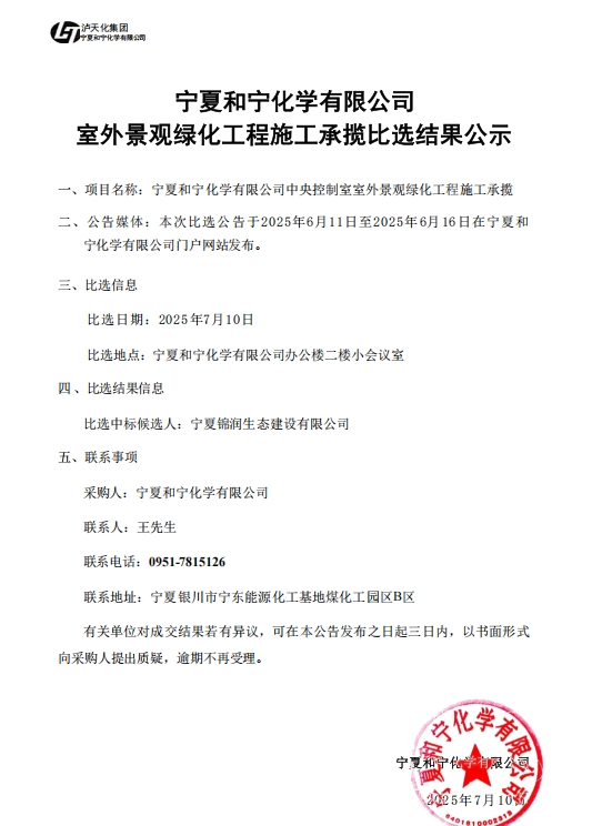 2025-07-11寧夏和寧化學有限公司室外景觀綠化工程施工承攬比選結果公示.pdf [全文]