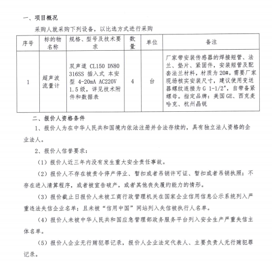 寧夏和寧化學有限公司氣化火炬新增超聲波流量計采購比選文件.pdf [全文]