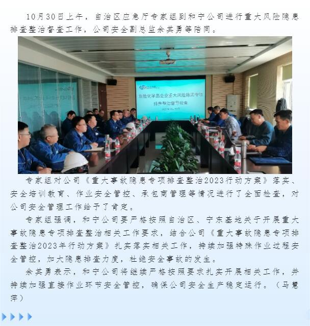 自治區應急廳專家組到和寧公司開展重大風險隱患排查整治督查工作