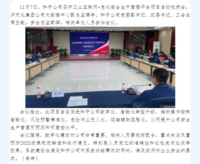 和寧公司召開工業互聯網+危化安全生產管理平臺項目啟動會