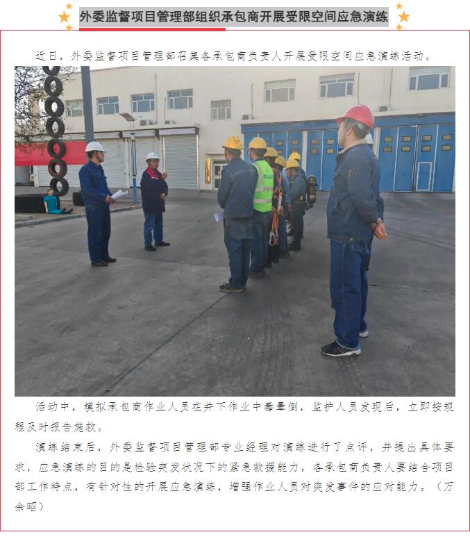 外委監(jiān)督項(xiàng)目管理部組織承包商開展受限空間應(yīng)急演練