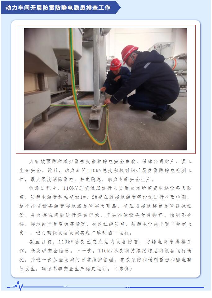 動力車間開展防雷防靜電隱患排查工作
