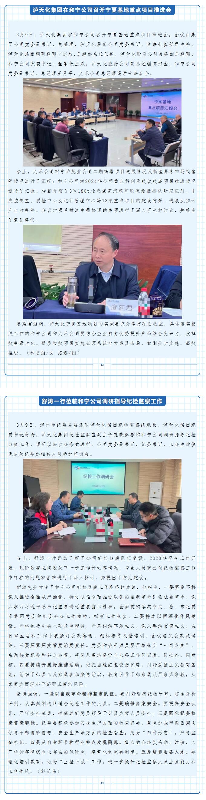 和寧要聞丨瀘天化集團在和寧公司召開寧夏基地重點項目推進會