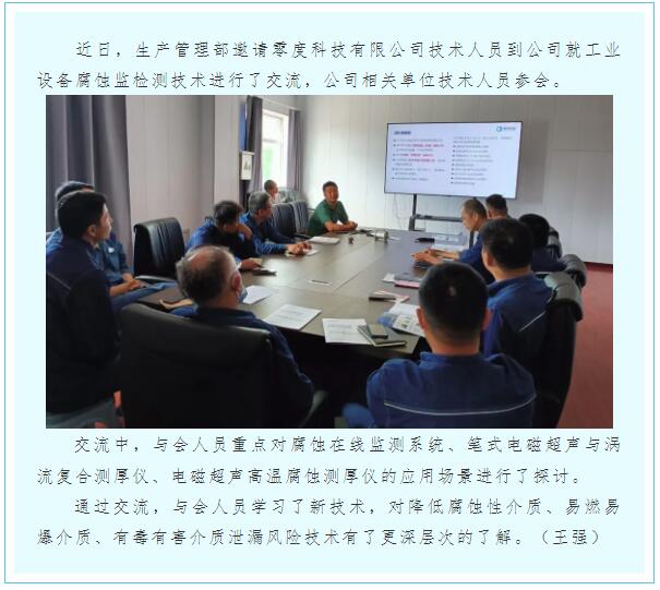 生產(chǎn)管理部組織開展工業(yè)設(shè)備腐蝕監(jiān)檢測技術(shù)交流