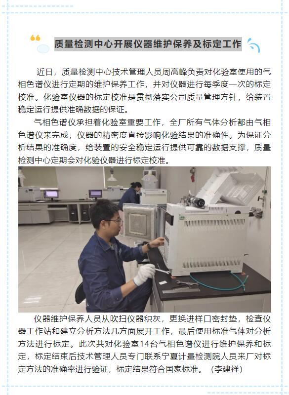 質(zhì)量檢測中心開展儀器維護保養(yǎng)及標定工作