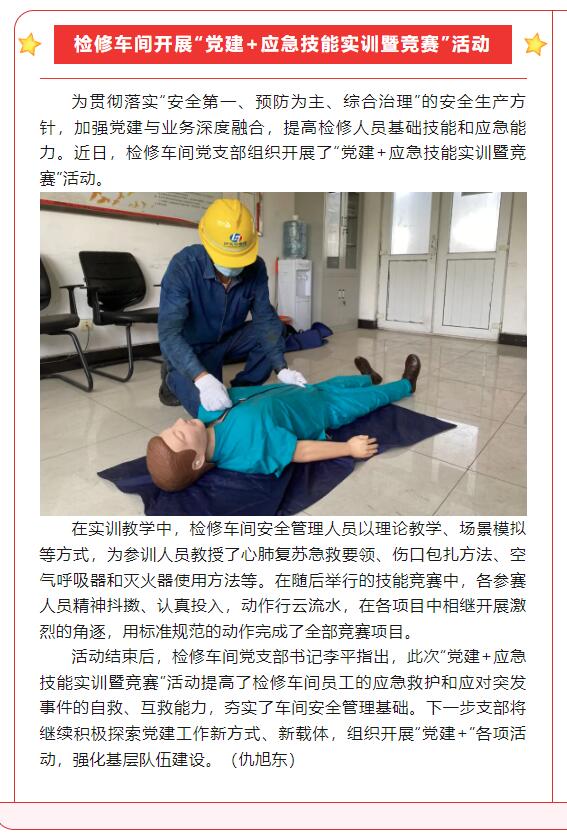 檢修車間開展“黨建+應急技能實訓暨競賽”活動