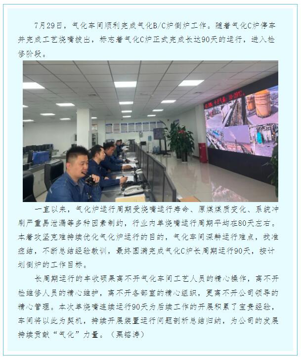 90天!氣化C爐刷新單燒嘴運行周期紀錄