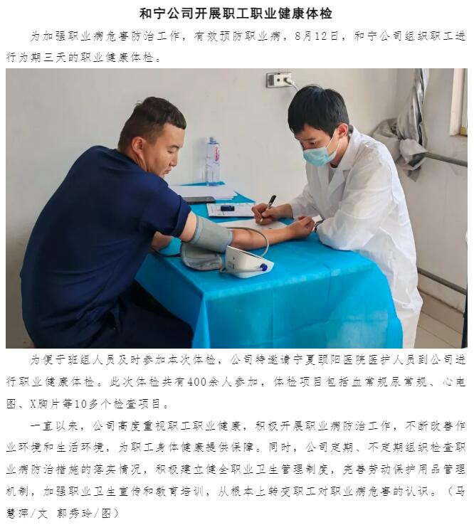 和寧公司開展職工職業(yè)健康體檢