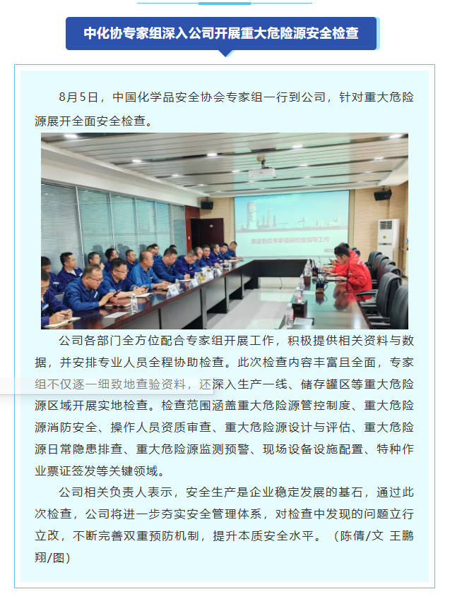中化協(xié)專家組深入公司開展重大危險源安全檢查