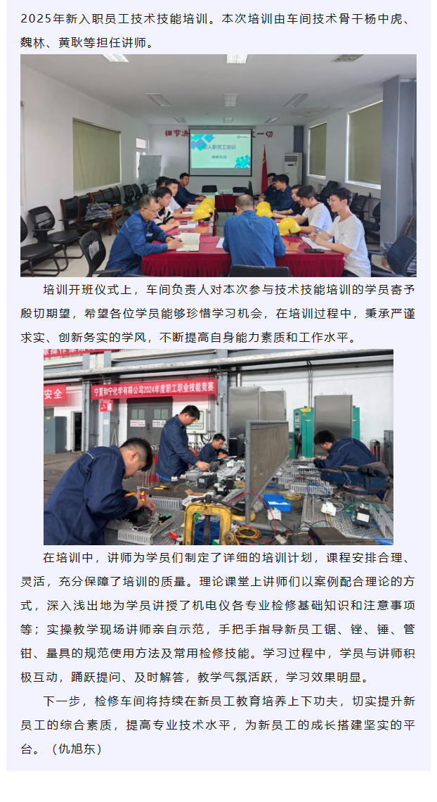 檢修車間舉辦2025年新入職員工技術技能培訓