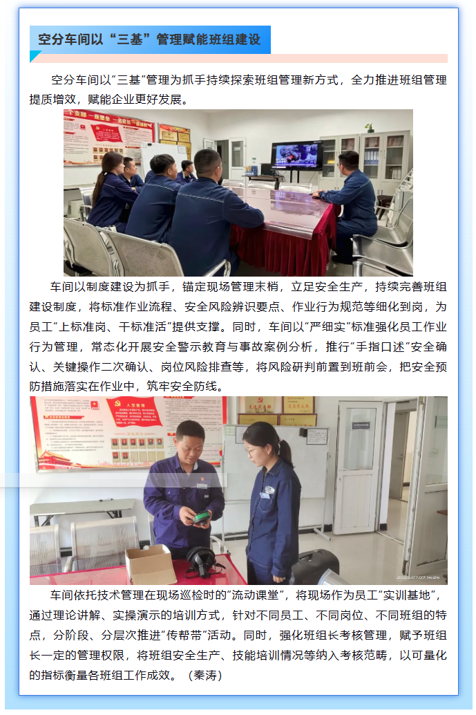 空分車間以“三基”管理賦能班組建設
