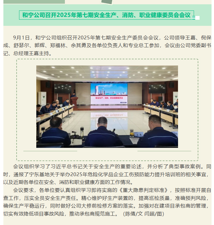 和寧公司召開2025年第七期安全生產、消防、職業健康委員會會議