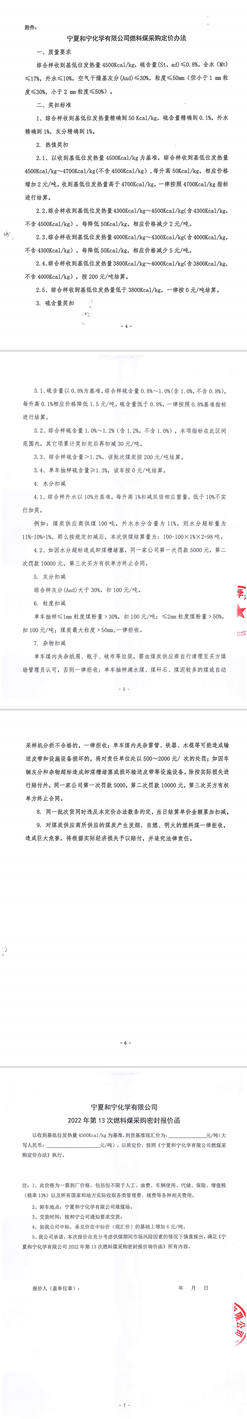 寧夏和寧化學有限公司2022年第13次燃料煤采購密封報價詢價函