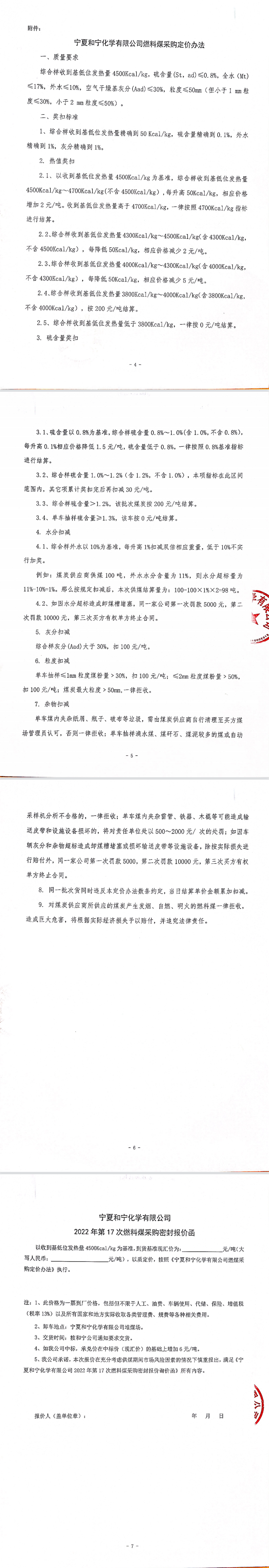 寧夏和寧化學有限公司2022年第17次燃料煤采購密封報價詢價函