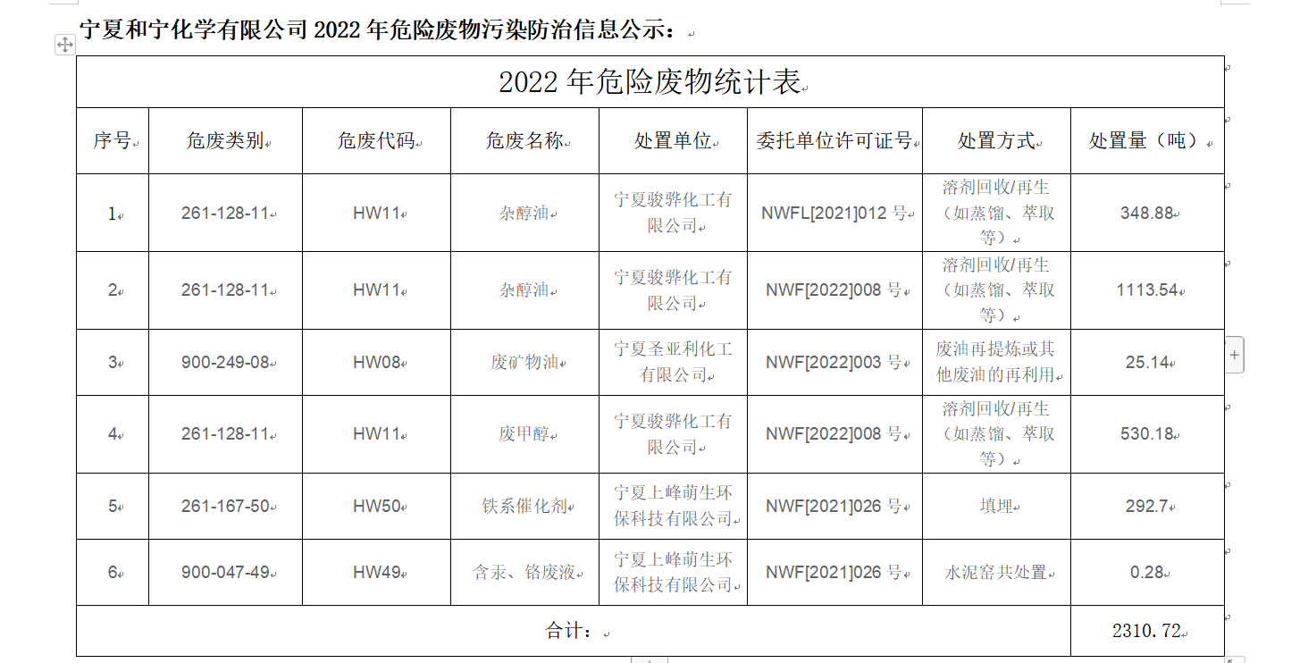 2022年危險廢物污染防治信息公示內容