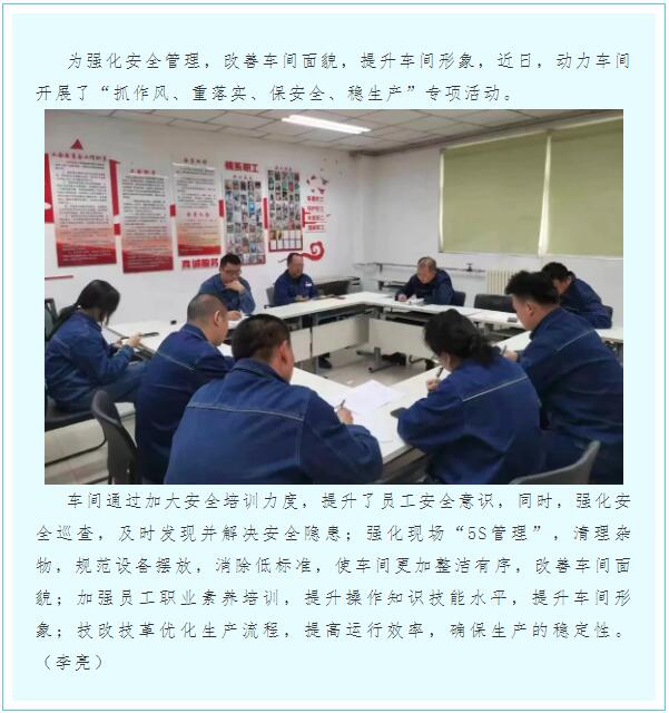 動(dòng)力車間開展“抓作風(fēng)、重落實(shí)、保安全、穩(wěn)生產(chǎn)”專項(xiàng)活動(dòng)