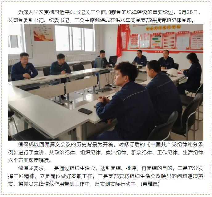 供水車間黨支部對(duì)口領(lǐng)導(dǎo)講紀(jì)律黨課