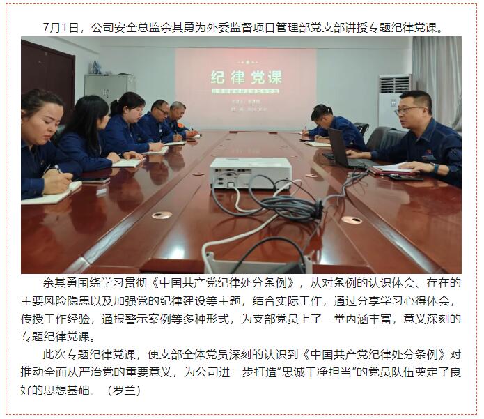 外委監(jiān)督項(xiàng)目管理部黨支部對口領(lǐng)導(dǎo)講紀(jì)律黨課