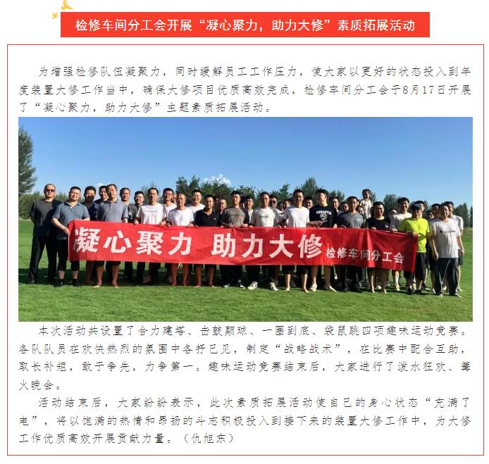 檢修車間分工會開展“凝心聚力,助力大修”素質拓展活動